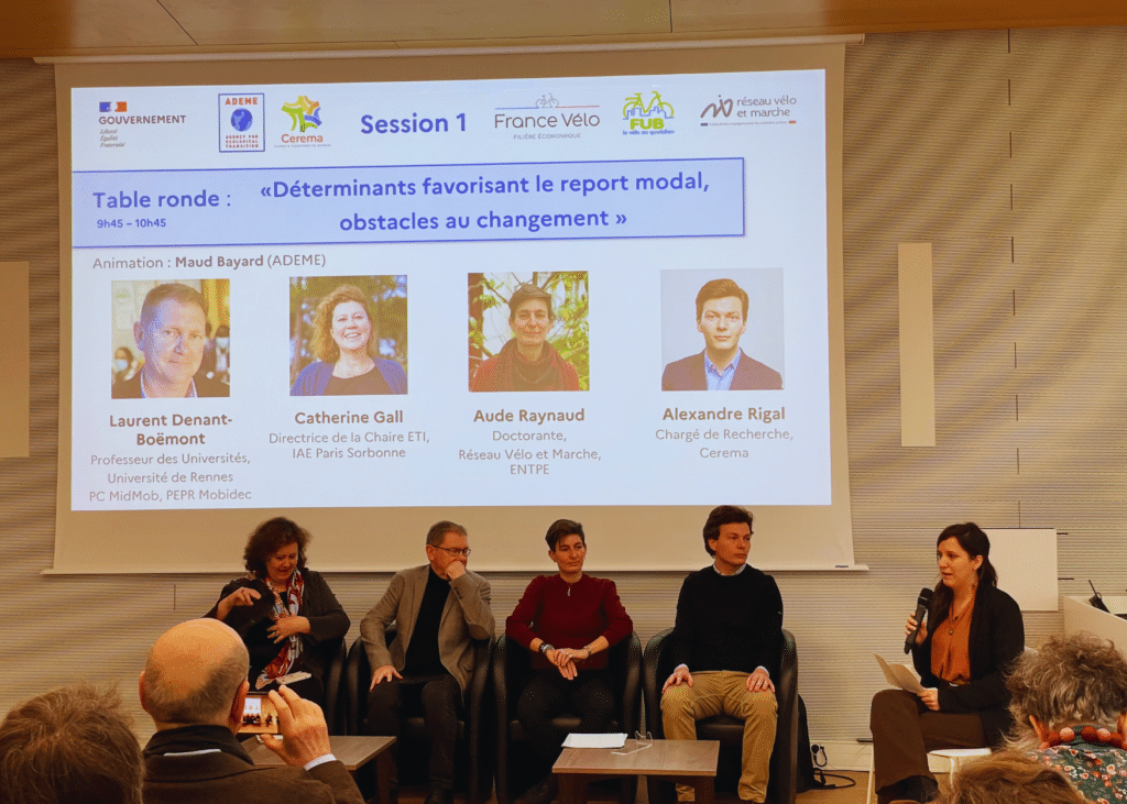La première table ronde, modérée par Maud BAYARD, référente vélo à l’ADEME, a ouvert le débat sur les déterminants du report modal et les obstacles au changement. Autour de la table, chercheurs et chercheuses ont rappelé un point clé : on ne change pas de mode de déplacement uniquement parce qu’une piste cyclable apparaît sur une carte.